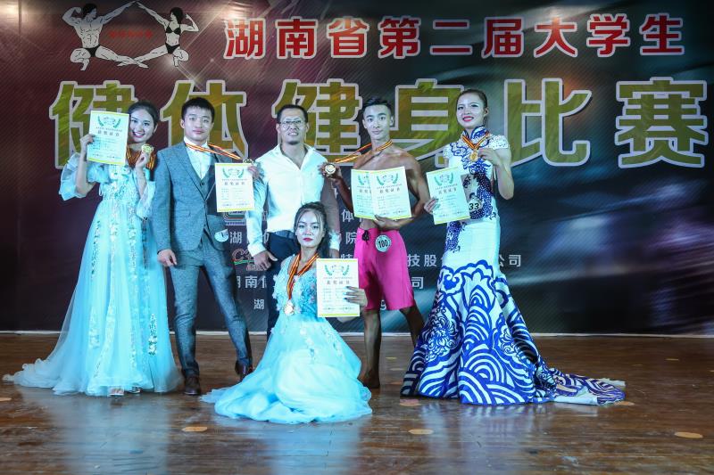 本次比赛由湖南省健身协会、湖南省学生体育协会主办,有来自全省17所高校140余人参加。我校代表队的运动员经过奋勇拼搏,取得了优异的成绩。其中,彭果获学院组男子健体B组冠军和全场最佳形体奖,粟文获学院组女子健体A组冠军和学院组女子健身A组冠军,陶志豪获学院组男子健身先生A组冠军,祝梦蝶获学院组女子健身B组冠军和学院组女子健体B组第二名,黄霞获学院组女子健体B组第三名和学院组女子健身B组第二名。(郭羽)