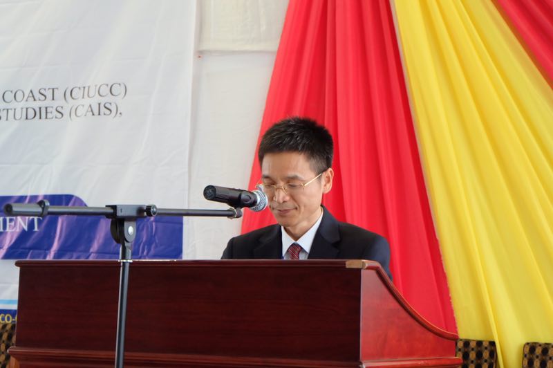 随后,海岸角大学孔子学院中方院长胡亮才为20名优秀汉语学习者颁发了大使奖学金并宣读了孙保红大使第二封贺信。参加开幕式的1200多名来自多国国家的专家、学者、加纳各级政府官员、海岸角大学及海岸角大学孔子学院相关汉语教学点师生等见证了这一荣誉时刻。