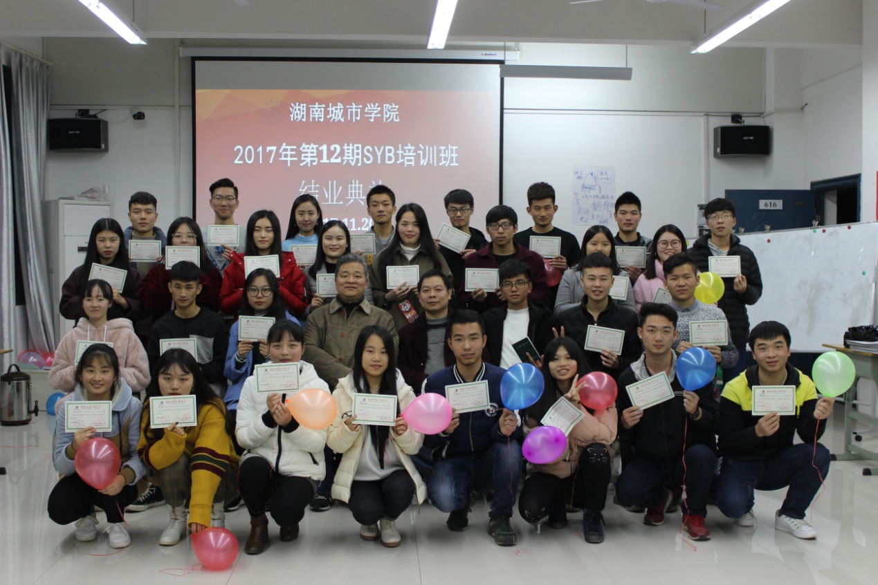 (本网讯)经过为期7天的培训,由学校继续教育学院举办的2017年第12期SYB创业培训班在土木楼SYB培训室举行了结业典礼,30名受训学员获得SYB结业证书,至此我校共有360名学生通过了SYB创业培训。