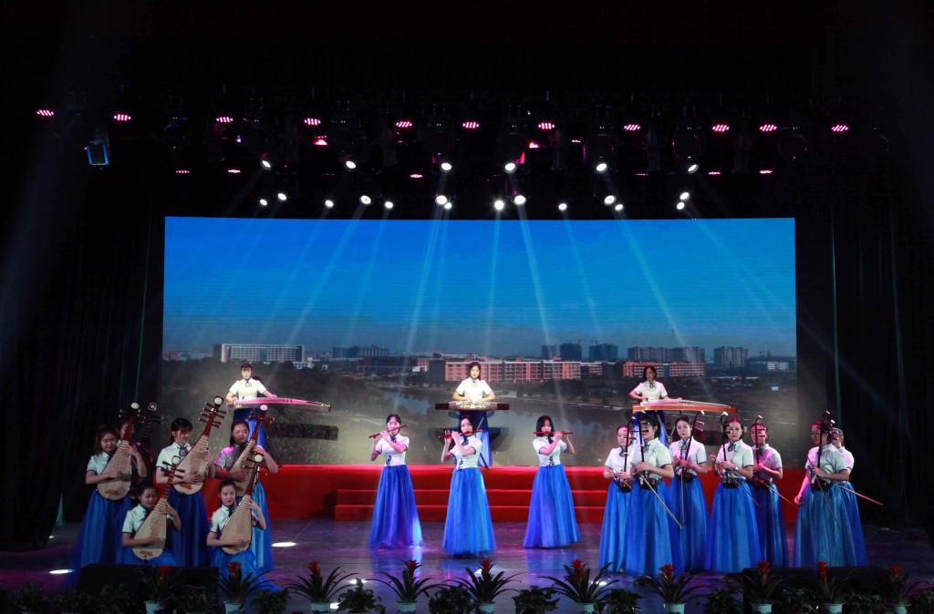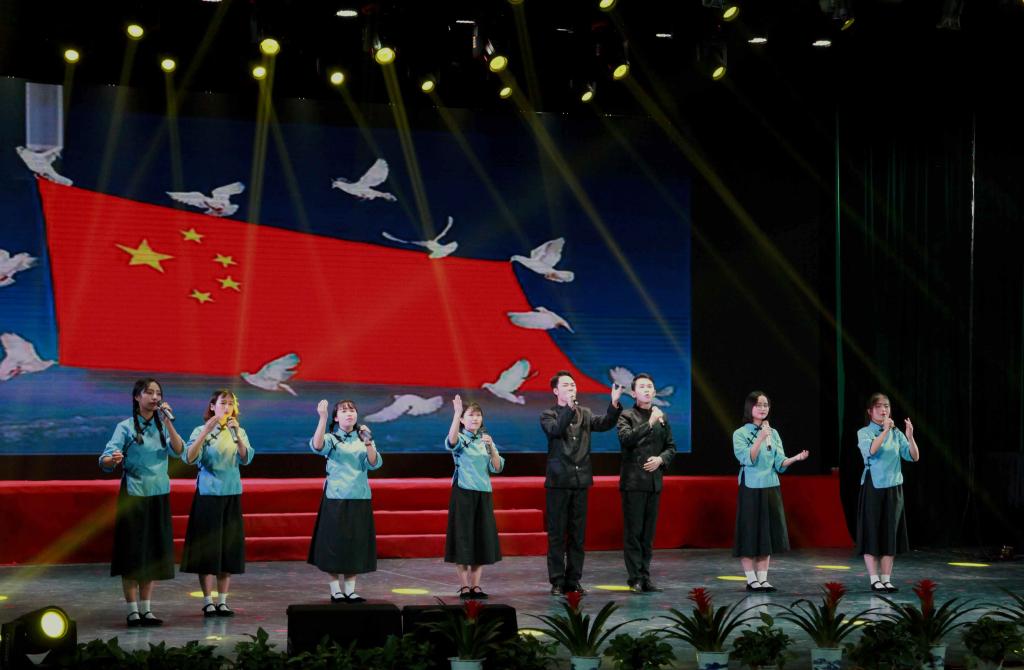 大红的舞台背景上,“不忘初心 继续前行”8个金色的大字熠熠生辉。台下灯光渐暗,喜庆而欢快的音乐声骤然响起,手持鲜艳大红绸的舞者尽情舞蹈,开场舞《东方红》拉开了晚会的序幕。红歌联唱《战斗青春 岁月芳华》,演绎了革命先烈不畏牺牲、浴血奋斗的战斗青春,诠释了中国共产党带领中国人民披荆斩棘走向光明与富强的光辉历程;张扬有力的军旅拳表演《荣光》彰显着我校军训学生教官的素质与风采;原创舞蹈《傩迹》,粗犷、豪放的男子群舞尽显湖南安化梅山傩文化的独特魅力;舞龙表演《大秦帝国之军魂》精彩的舞龙表演与舞蹈动作浑然天成、配合默契,赢得观众阵阵喝彩;戏曲联唱《梨园春曲》典雅精致的词句搭配悠扬委婉的唱腔,表现了中国人含蓄、稳健、精致、典雅的精神品格;阿卡贝拉演唱《彩云追月》轻柔婉转,沁人心脾;器乐表演《城院好风光》琴瑟和鸣、气势如虹,尽显九游手机平台内涵建设、特色发展、“六破六立”推进改革的蓬勃生机;“祖国”是我们心中最神圣的词语,在大学生青春、高昂的朗诵《祖国啊,我亲爱的祖国》声中,显得那么美好与深情;《武术》表演技艺高超,激起观众的欢呼与惊叹;合唱《不忘初心》慷慨激昂,气势磅礴,催人奋进。