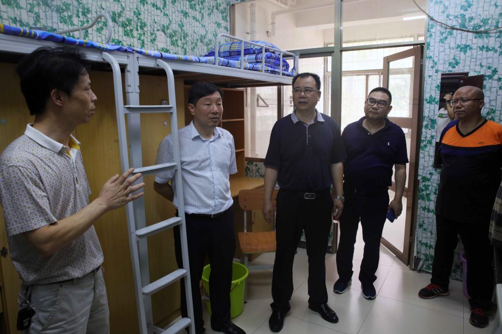 (本网讯)为切实加强期末和暑期校园安全工作,及时消除各类安全隐患,确保广大师生生命财产安全,7月24日下午,校长李建奇,副校长郑卫民、谭献良率党政办、宣传部、学生工作处、保卫处、基建与后勤管理处、资产处相关负责人对校园多个重点区域进行安全检查。