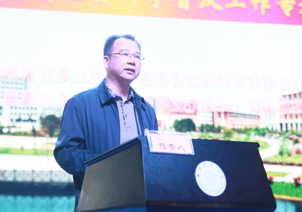 随后,省人大常委会法制工作委员会主任吴秋菊和红网新媒体集团党委副书记、总编辑贺弘联,分别就“深入推动《湖南省社会科学普及条例》贯彻落实”、“社科普及与新媒体融合发展”等进行了深入的讲解和分析。益阳市社科联、湖南党史陈列馆、九游手机平台湖湘传统美术研究基地、长沙市启园心理援助与发展中心等4家单位负责人作了社科普及工作先进经验交流发言。
