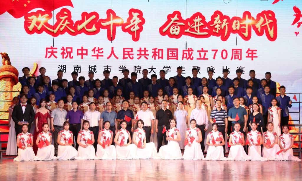 (本网讯)为了庆祝中华人民共和国成立70周年,教育引导青年学生增强振兴中华的责任感与使命感,营造爱国爱校、同心奋进的校园文化氛围。2019929日晚7:00 ,我校“欢庆七十年 奋进新时代——庆祝中华人民共和国成立70周年”大学生歌咏比赛在音乐厅举行11支参赛队伍1100余名学子以昂扬的热情,唱响壮丽70年的激扬旋律,共同祝福祖国繁荣富强。学校党委书记罗成翼、校长李建奇等校领导,机关处室、二级学院的领导老师出席本次活动。