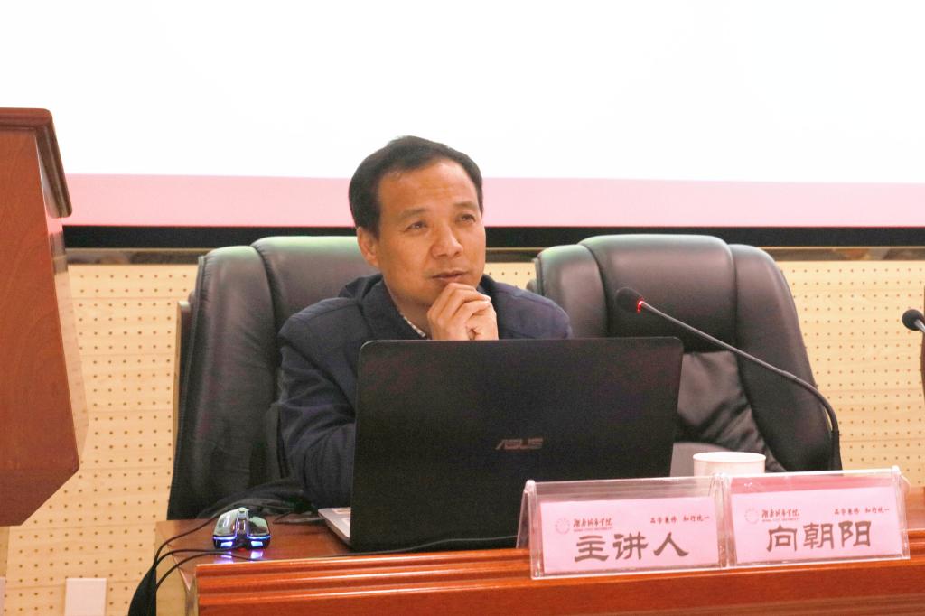 (本网讯)2019年12月14日,加强学校专兼职纪检队伍建设,提升适应新时代高校纪检监察工作的专业精神和专业能力,增强依纪依法履职本领,我校在建规楼121报告厅举办了纪检监察干部培训。省纪委省监委驻省教育厅纪检监察组正处级纪检监察员、二级调研员向朝阳应邀来校,作了题为“品读论语,提升修养,做新时代合格共产党员”的专题讲座。省委教育工委党校第121期处级干部培训班学员,各二级党委(党总支)纪检委员、党风校风观察站成员,纪检监察处全体干部参加了本次培训。