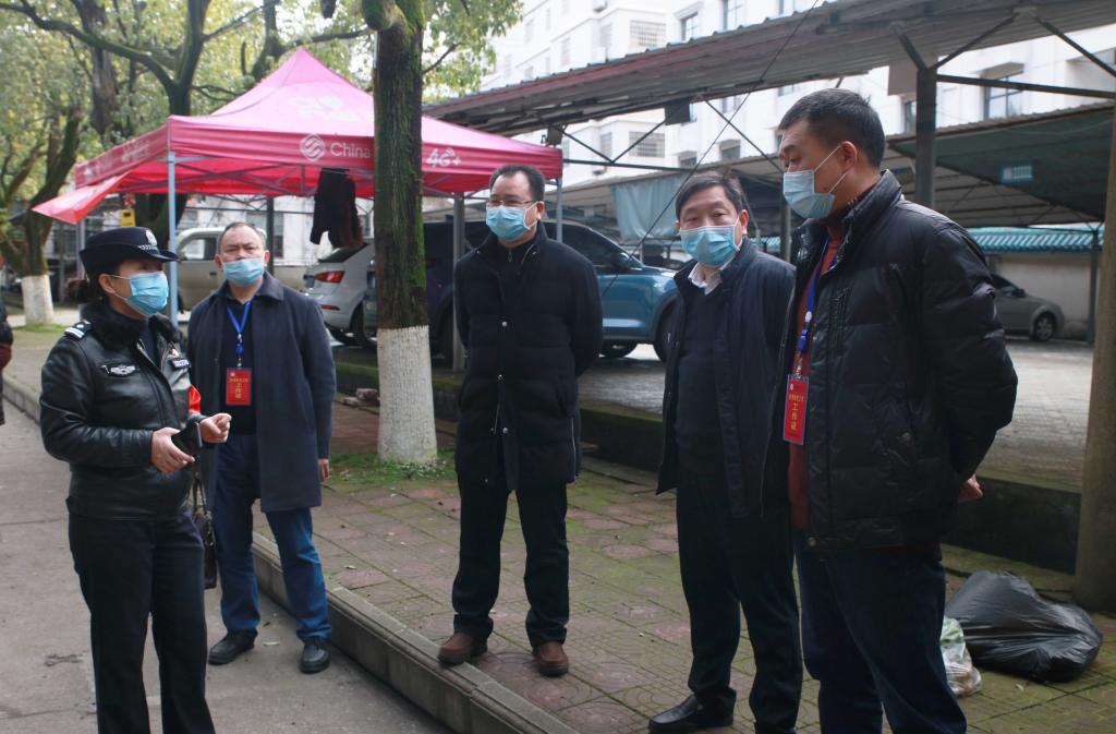 (本网讯)为进一步落实疫情防控工作,确保我校全体教职工的生命安全与身体健康。2020年2月13日,校长李建奇,副校长夏宏宇、谭献良一行来到慧泽园、朝阳小区等教职工家属区,检查指导疫情防控工作,看望奋战在疫情防控一线的工作人员。党政办、保卫处、基建与后勤管理处、物业公司以及业主委员会相关负责人陪同检查。