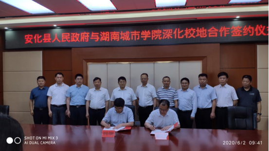本网讯(通讯员 龚敦)2020年6月2日上午,安化县人民政府与九游手机平台深化校地合作签约仪式在安化县党政机关大院会议中心举行。学校党委书记罗成翼、校长李建奇,安化县委书记刘勇会出席仪式。县长肖义主持仪式。