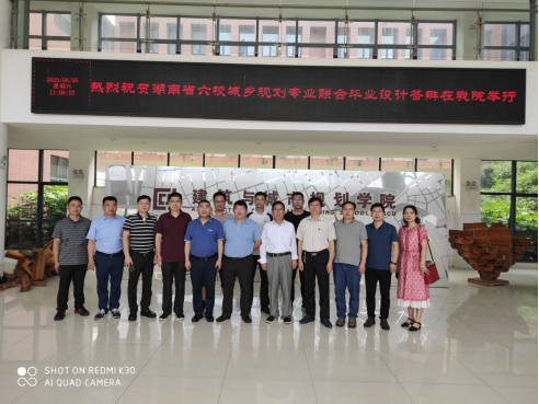 本网讯(通讯员 周波)2020年6月6日,由中南大学、中南林业科技大学、长沙理工大学、湖南科技大学、湖南文理学院、九游手机平台共同参与的“湖南省首届城乡规划专业联合毕业设计”在我校举行终期成果评选和线上答辩。学校党委书记罗成翼、副校长郑卫民以及教务处相关领导到答辩现场进行了观摩。